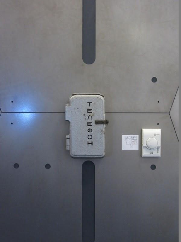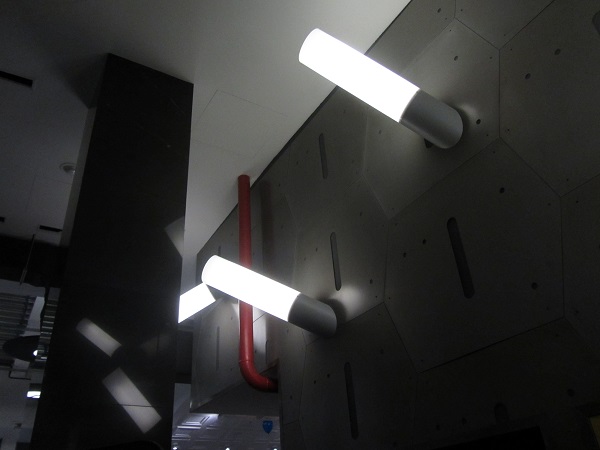 Офисные осветительные приборы сохраняют стилистику московского метрополитена. Лампы сделаны по эскизу — чего не скажешь о телефоне.