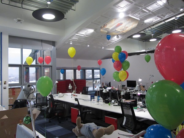 В офисе Google очень много воздушных шаров — они буквально повсюду. Остается лишь догадываться, насколько ярким было прошедшее корпоративное торжество. :-)