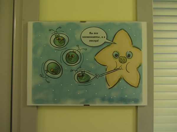 Начну издалека. Для меня стало открытием, что компания USABILITYLAB сравнительно небольшая. В ее штате — всего около 40 человек, хотя я думала, что сотрудников в разы больше. Офис компании достаточно компактный, спрятаться негде. Большая часть помещения отдана ю-специалистам (тем, кто непосредственно тестирует сайты), и представляет собой классический open space. В очень похожих условиях за прозрачной перегородкой работает коммерческий отдел, а в глубине располагаются несколько обособленных переговорок и кабинеты руководства. Впрочем, в помещении найдется место и для работы, и для отдыха, а среди стандартных «серых» офисных атрибутов (компьютеров, настенных экранов, кофе-машин, офисной мебели) встречаются объекты, выдающие молодой, живой и энергичный коллектив: игрушки, спортивные принадлежности, книги. Одни плакаты на стенах чего стоят!