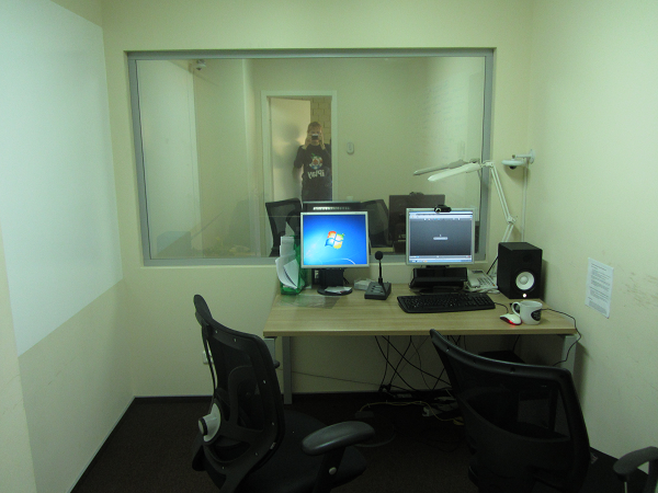 Лаборатория — это две комнаты, соединенные между собой зеркалом Гезелла. Уверена, что зеркало Гезелла знакомо каждому, хотя немногие слышали его название. :-) Это стекло, которое с одной стороны отражает свет, как зеркало, а с другой остается полупрозрачным. С его помощью заказчик может наблюдать, как респондент (испытуемый пользователь) тестирует продукт. Обе комнаты оборудованы профессиональной аппаратурой. Помимо обычного компьютера, респондент использует айтрекинговое оборудование, которое отслеживает движения его глаз во время тестирования. Все происходящее фиксирует видеокамера, а диалог респондента с модератором (сотрудником USABILITYLAB, проводящим тестирование) записывается отдельно с помощью микрофона.
