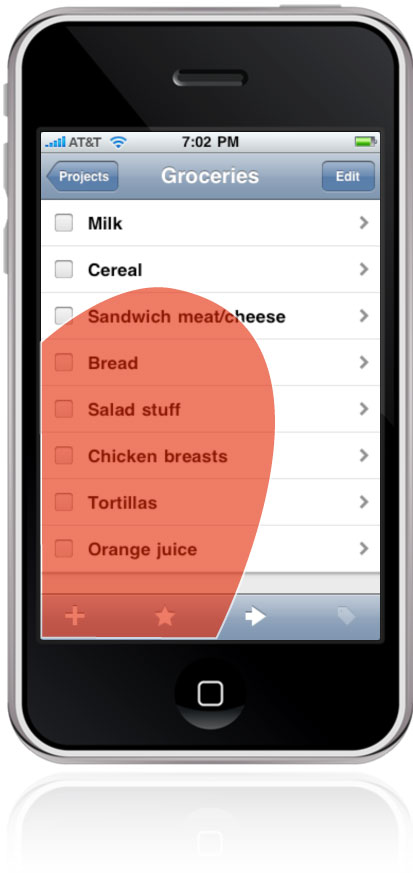 Расположение основных элементов управления внизу экрана – не только вопрос удобства для большого пальца, но и следствие того, что пальцы закрывают экран. Двигаясь в нижней части, пальцы менее всего закрывают контент. Чтобы весь контент был виден, расположите его над элементами управления. Эта знакомая всем схема используется в большинстве физических устройств: iPod, калькулятор, сотовый телефон, напольные весы – список можно продолжать. Контент – вверху, элементы управления – внизу.