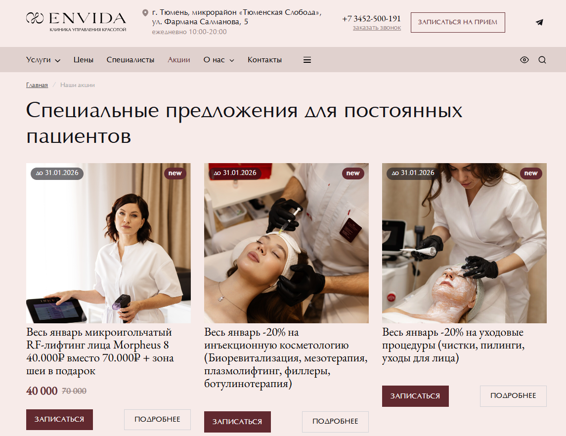 Показать больше Косметологическая Клиника ENVIDA Тюмень