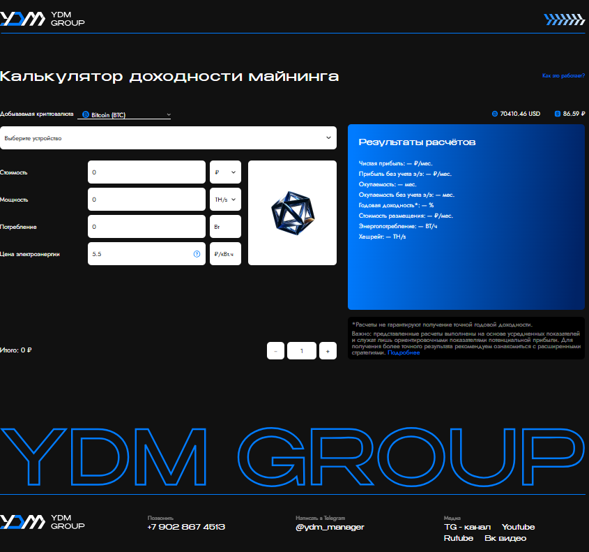 YDM - калькулятор доходности майнинга