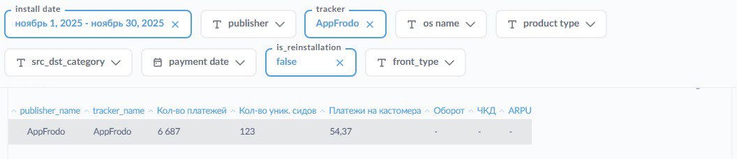 Внутри системы можно создавать доски для отслеживания фрода по In-App источникам, сопоставляя их результаты с органическим трафиком или чистыми кабинетными кампаниями. Отклонения по ключевым параметрам вроде конверсии, среднего чека, времени в приложении, удержания пользователей будут сигнализировать о возможных проблемах с качеством трафика.