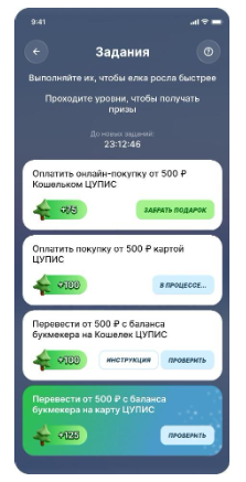 В ЕДИНОМ ЦУПИС за 25 год запустил 2 геймификации: «Тапайте и побеждайте» в сентябре и «Еловый джекпот» в ноябре-декабре. Цель — повысить частоту использования приложения и вовлеченность в продукт.