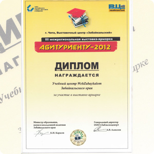 Учебный центр WebZabaykalom, забайкальский представитель Учебного центра Edgestile г. Ижевска, принял участие в III межрегиональной выставке «Абитуриенту — 2012», которая проходила в выставочном центре «Забайкальский» города Читы с 15 по 17 февраля.