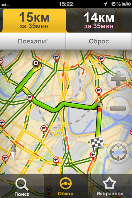 Всё необходимое для ориентации на местности здесь имеется, это: актуальные карты, маршрутизация с учетом пробок и ведение по маршруту. Приложение готово сопровождать водителя в любых поездках по России и Украине.