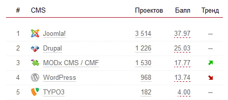 Чем больше сайтов работают на той или иной CMS и чем выше показатели их авторитетности с точки зрения поисковых систем – тем выше система управления сайтом находится в рейтинге.