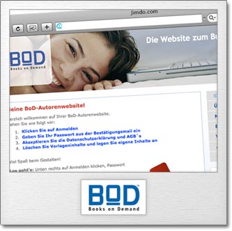 вместе с BoD любой писатель может сделать доступной для скачивания свою книгу. Как блестящее дополнение, этот писатель может через портал BoD создать свой сайт. Для этого писателю надо выполнить регистрацию своего сайта на BoD, и он получит его с классным шаблоном, подготовленным BoD специально для своих клиентов.