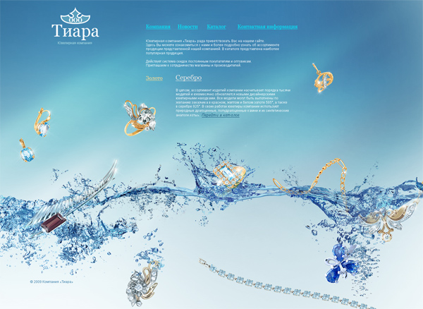 Формулируя требования к сайту, ювелирная компания «Тиара» поставила перед студией «Бинарио» задачу разработки простого каталога для оптовиков и при этом необычного дизайна.