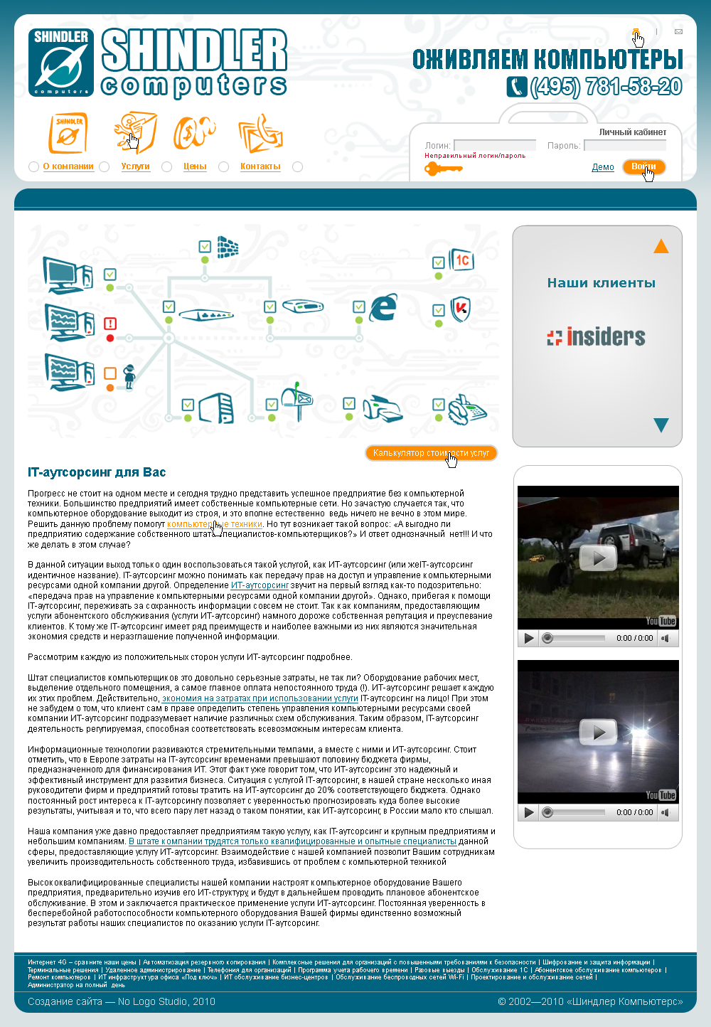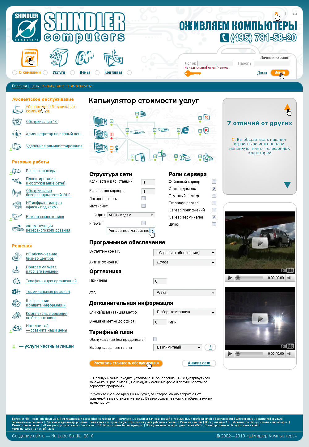Для удобства клиентов на сайте http://www.shindler.ru/ создан удобный калькулятор с флеш-визуализацией выбранной топологии сети.