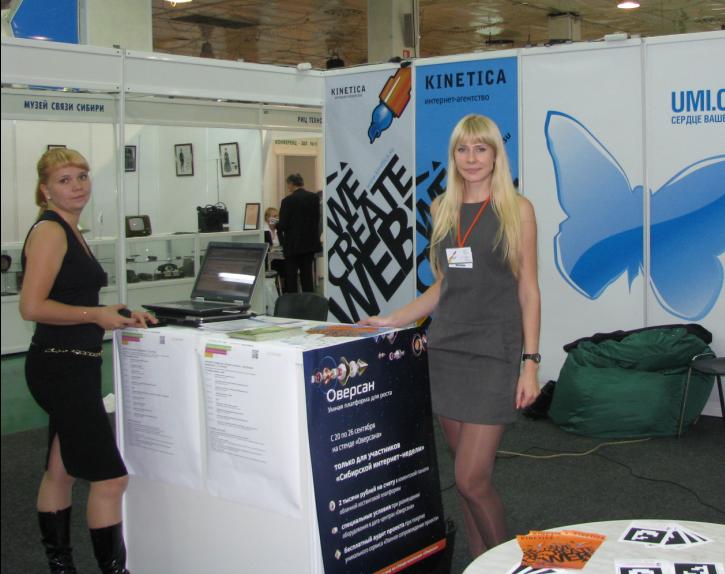 Руководитель отдела создания сайтов Ирина Трегубова героически простояла 3 дня на ЮмиКинетической части стенда партнёров «Сибирской интернет-недели», раздавая синие и оранжевые буклеты счастья!