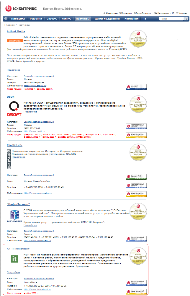 В рейтинге участвуют более 3000 компаний, имеющих опыт разработки и хостинга веб-проектов на основе продуктов «1С-Битрикс».