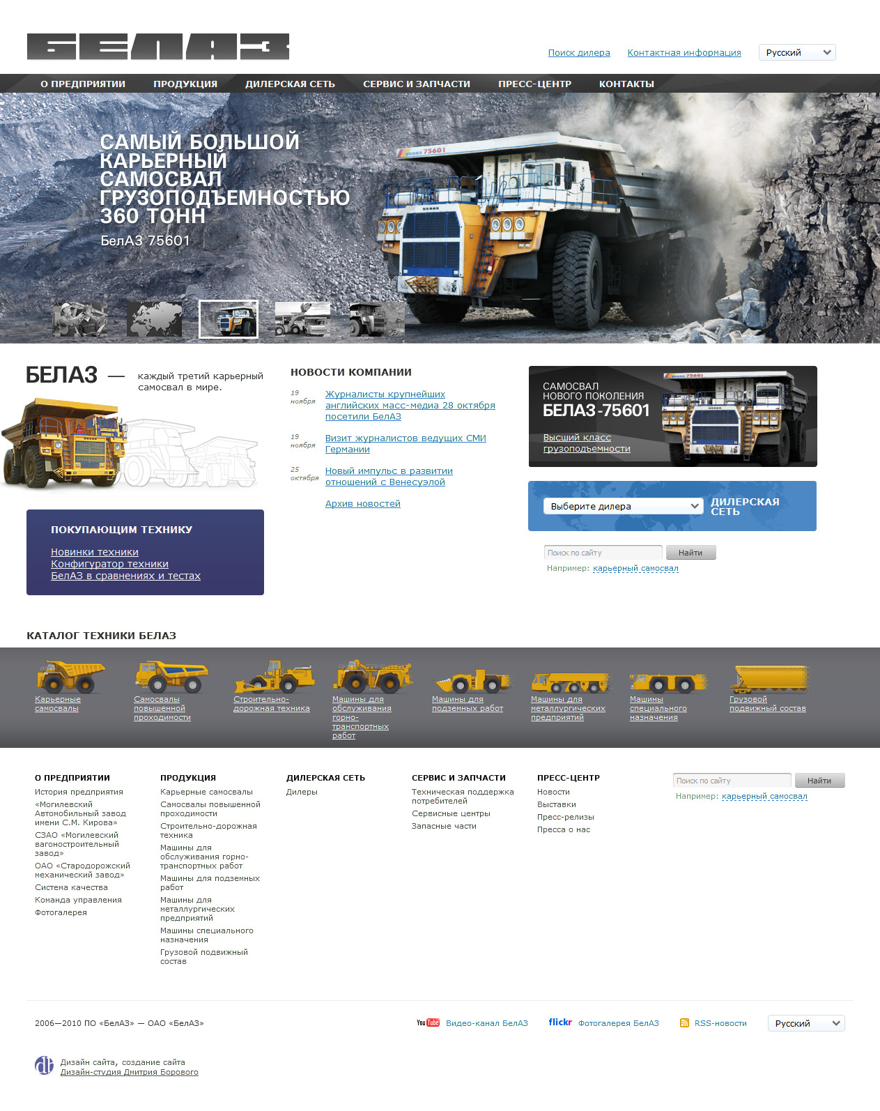 Главная страница корпоративного сайта ОАО «Белорусский автомобильный завод»