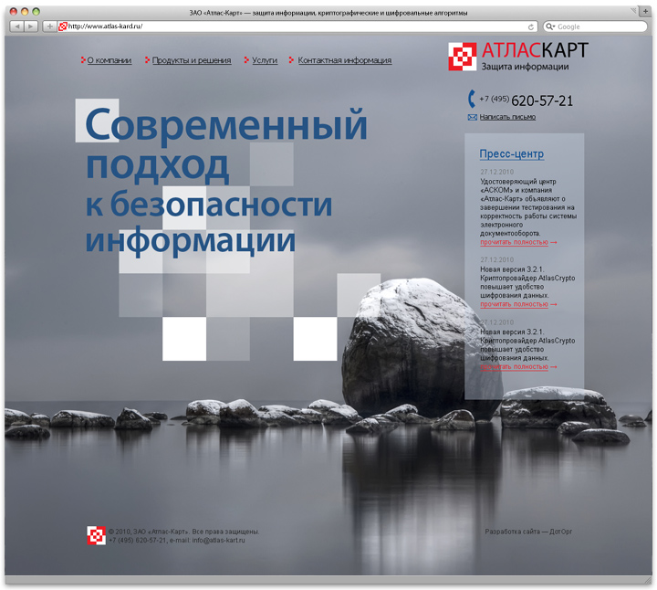 Задача проекта была сформулирована следующим образом — сайт должен четко и серьезно представлять компанию в сети Интернет.