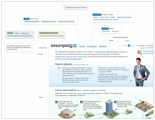 Существовавший у компании «Юнитрейд» сайт был весьма симпатичным, однако не решал главной задачи — посетитель, попав на сайт, не понимал, чем занимается и какие услуги может оказать ему компания. Звонков от посетителей сайта не было, продаж, связанных с сайтом — тоже. Нужно было что-то менять.