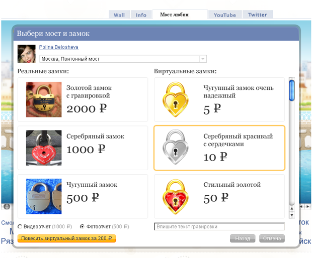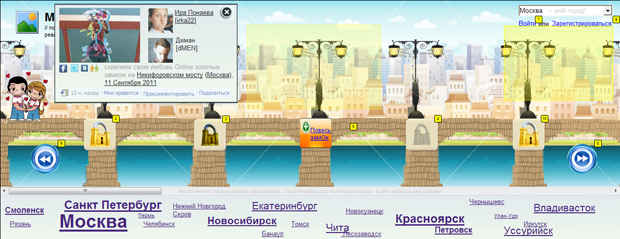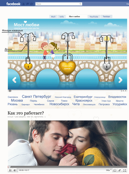 История создания. К нам обратились с идеей сделать сайт, где влюбленные могли бы вешать замки на мостах, офф- и он-лайн.