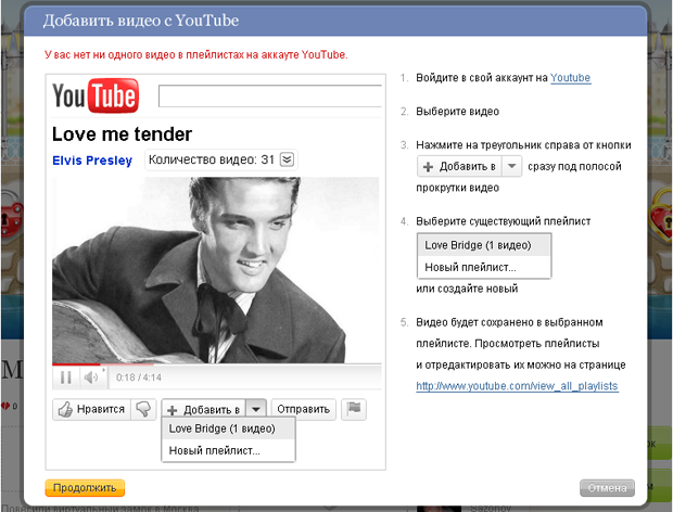 В вариант для Facebook загружаем романтичные видеоролики из YouTube.