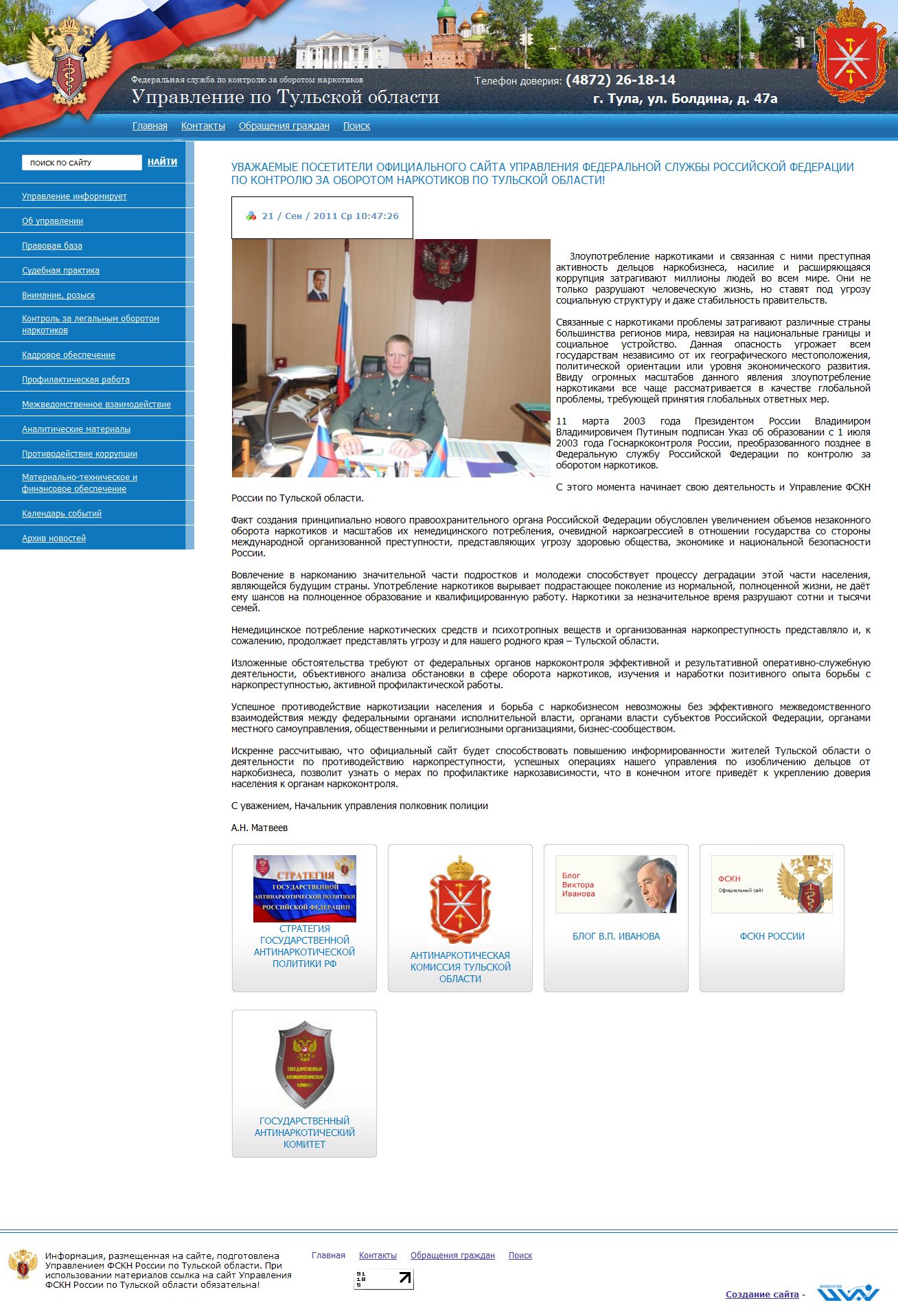 Компания «ЮниВеб» закончила работы по сайту http://71.fskn.gov.ru/ для ФСКН России по Тульской области. Сайт разработан с учетом всех пожеланий заказчика, а заказчик этот, поверьте на слово, не из простых. Постоянно меняющиеся нормативы, приходящие из вышестоящих инстанций, в значительной мере усложняли работу. Сайт делался на системе управления 1С-Битрикс, и поэтому мы создали уникально гибкий функционал для сотрудников, которые будут управлять информацией на сайте.