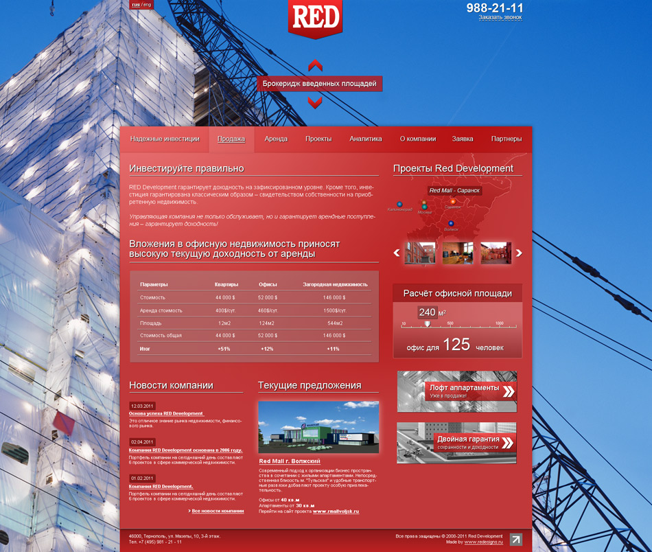 А также были созданы оригинальные страницы для каждой страницы и для каждого проекта компании.