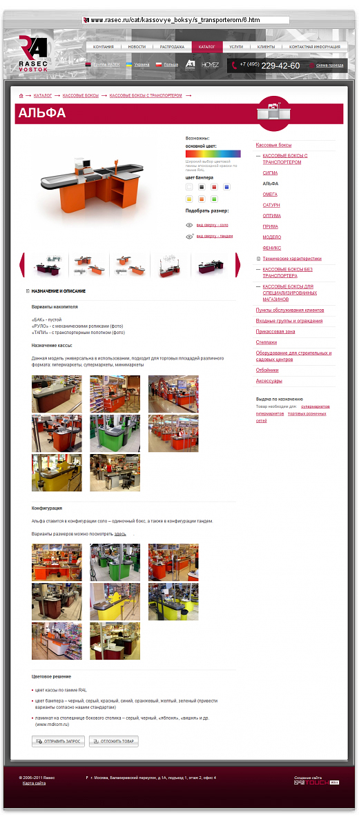 При создании сайта разработчики уделили большое внимание представлению товаров компании. На главной странице есть интерактивная галерея с изображениями продукции и указанием их основных характеристик.