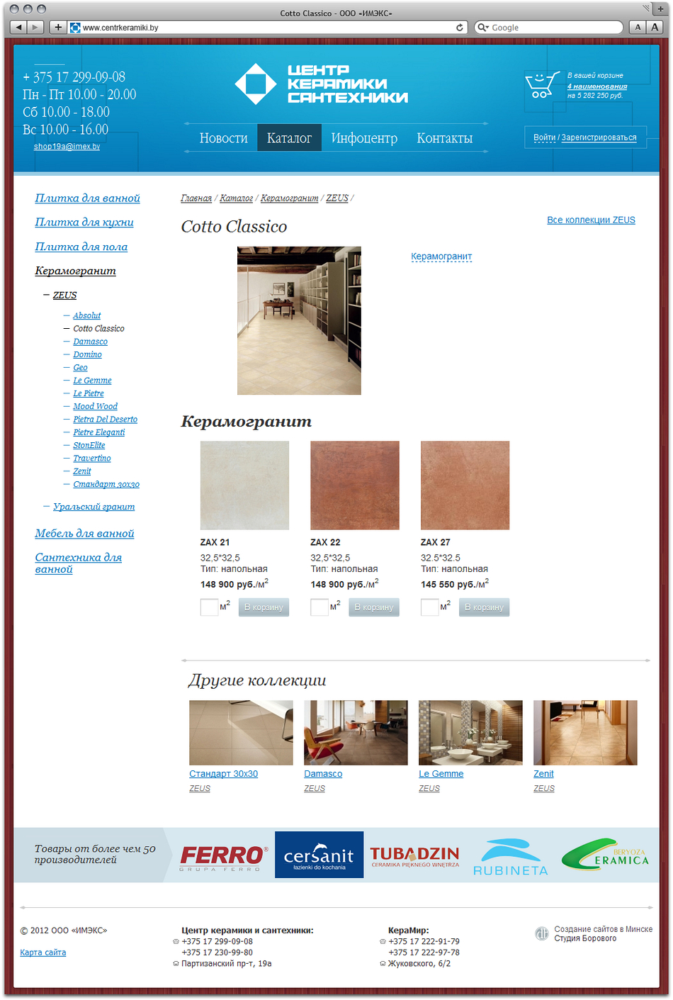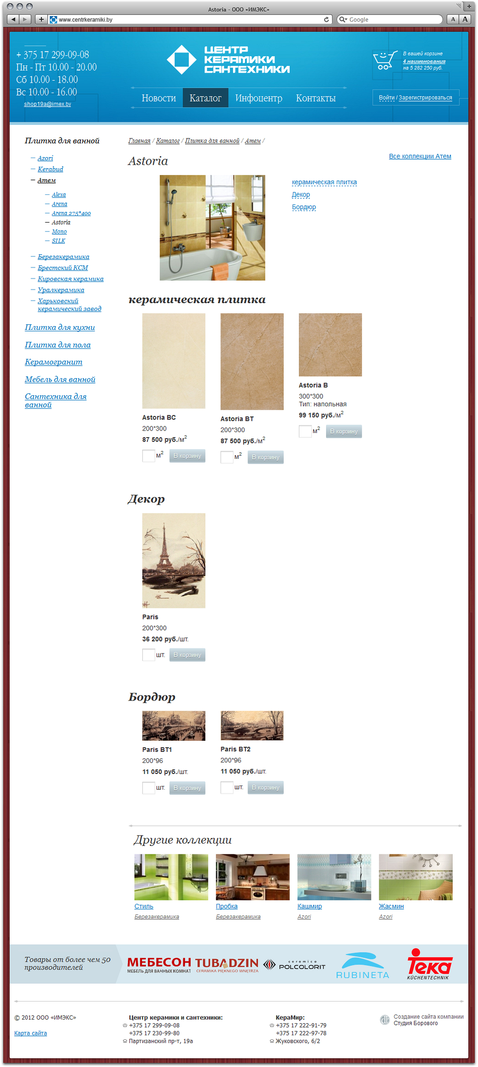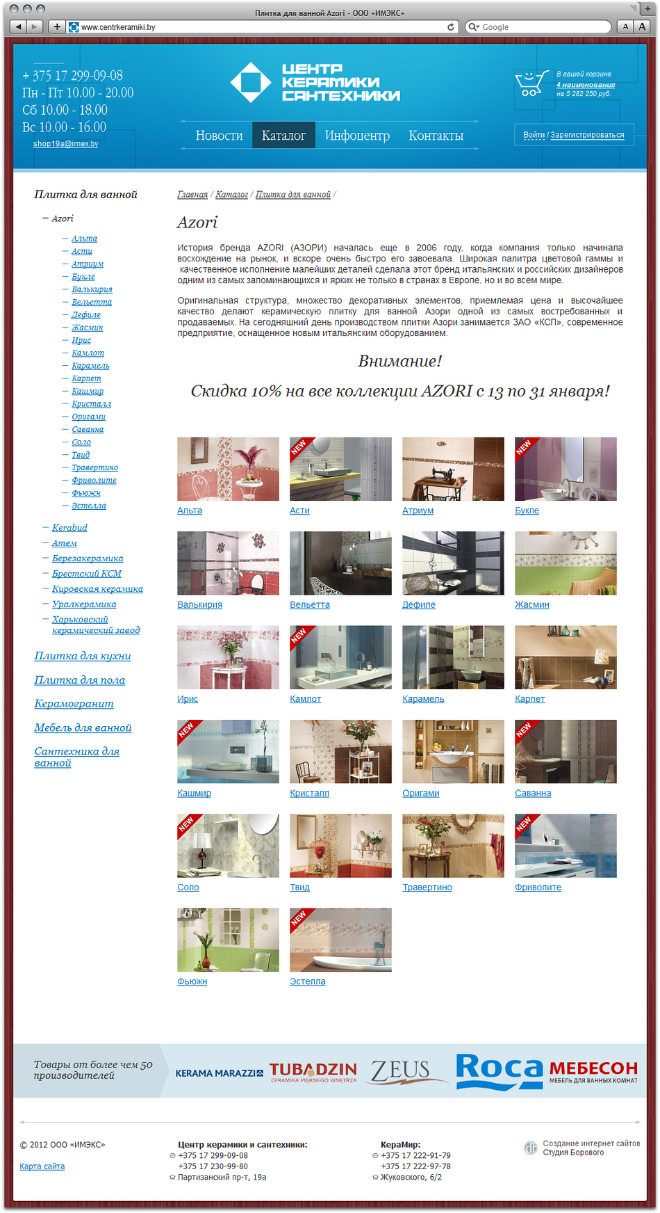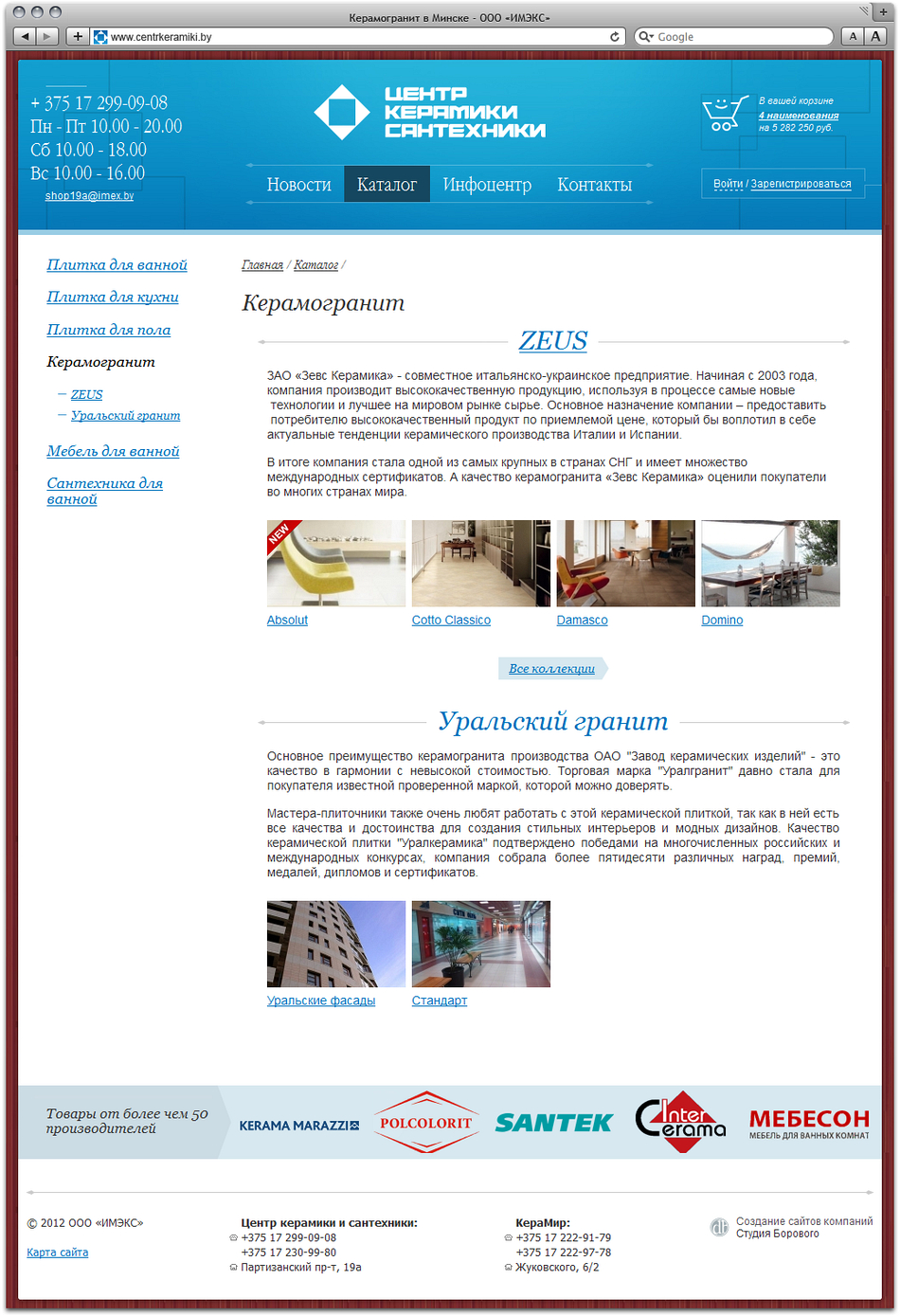 Студия Борового представляет интернет-магазин cети магазинов «Керамир» и «Центр керамики и сантехники» компании «Имэкс», предлагающий широкий выбор керамической плитки, сантехники и мебели для ванной от более чем 50 производителей.