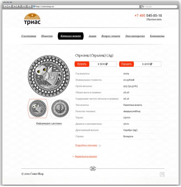 Возможно, и нумизматы найдут здесь что-то себе в коллекцию, однако предназначение каталога — продажа драгоценных монет. Так как объект торга довольно специфичный, на главной страничке приводятся поясняющие тезисы: