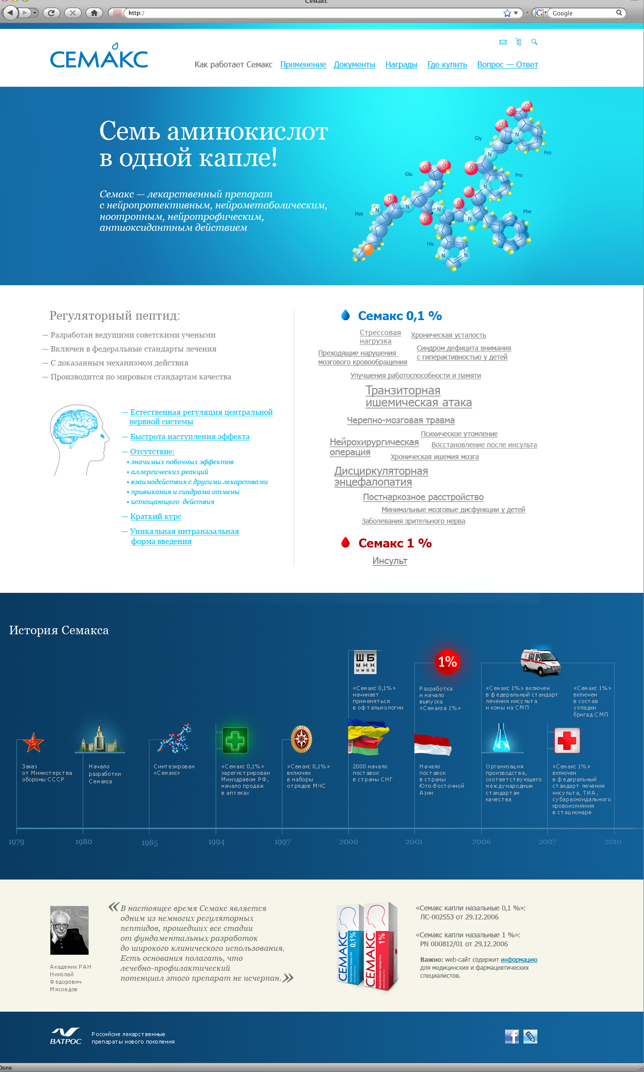 «Семакс» — лекарственный препарат, разработанный изначально для стимуляции функций мозга здоровых людей, также эффективен при лечении расстройств памяти и профилактике инсульта.