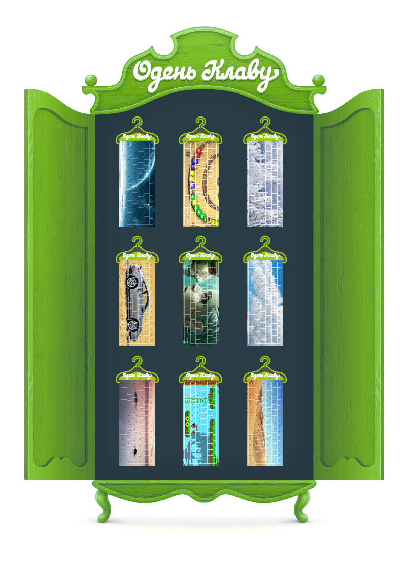 Для того, чтобы клиент мог выгодно представить свою продукцию в розничных магазинах, в агентстве предложили оформить фирменные стенды в виде платяного шкафа, внутри которого всегда можно подобрать «одежду» на любой вкус.