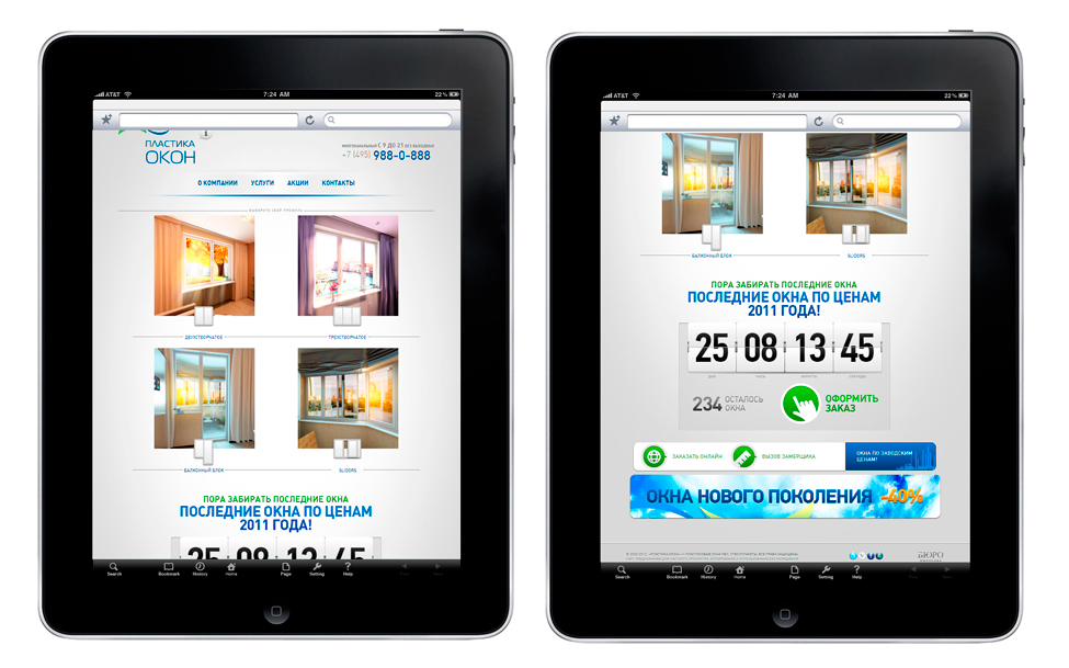 Теперь иллюстрации в центральном блоке демонстрируются в 2 ряда и на сайте появился вертикальный скроллинг… но, согласитесь, скроллинг на iPad реализован замечательно и лишний раз воспользоваться им даже приятно. :)