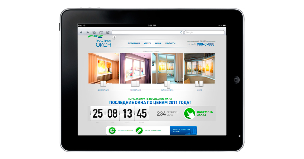 Таким образом, где бы и каким бы устройством ни пользовался потребитель, он всегда может получить всю необходимую информацию о компании «Пластика Окон» и ее продукте. Адаптивная верстка сайта (responsive web design) позволяет исключить потери «мобильной» аудитории и сделать сайт универсальным для просмотра. В условиях, когда время становится едва ли не самым дорогим ресурсом, возможность получить необходимую информацию «здесь и сейчас» в удобном, привлекательном виде становится важным критерием выбора потребителя. А сам адаптивный дизайн – незаменимым инструментом работы с аудиторией в Сети.