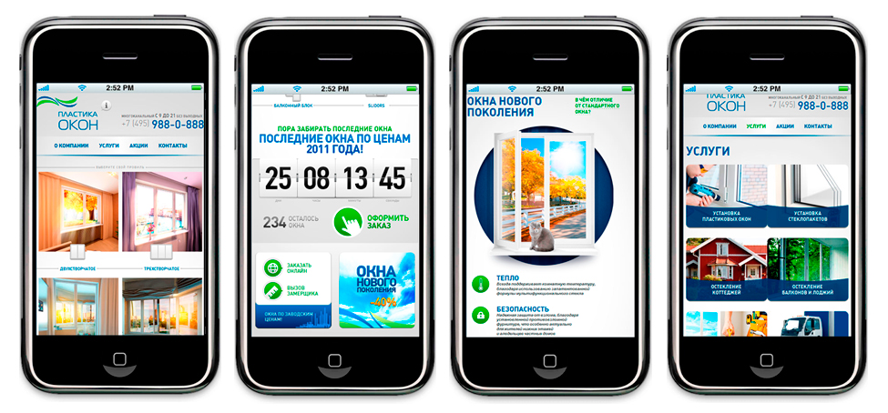 Мы делаем сайт с использованием технологии адаптивного веб-дизайна для компании «Пластика Окон». Суть технологии в том, что верстка сайта и содержание страниц меняется в зависимости от размера экрана воспроизводящего устройства.