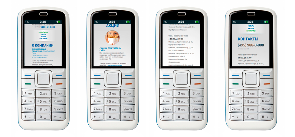 Таким образом, сайт одинаково хорошо и корректно смотрится и на широкоформатном мониторе, и на планшете, и экране смартфона, и на обычном телефоне с поддержкой интернета.