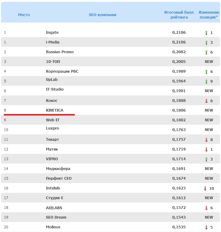 KINETICA вошла ТОП-10 рейтинга SEOnews "SEO глазами клиентов 2012" — CMS Magazine