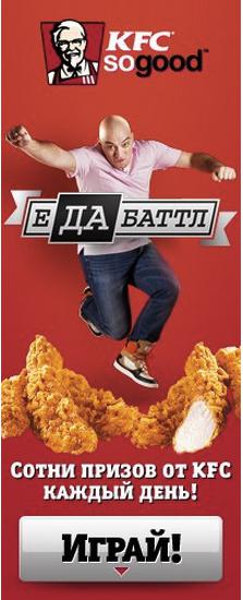 В интернете KFC запустила «ЕдаБаттл» - серию рекламных роликов о битве «обычной» еды и cтрипсов. Над проектом работало креативное агентство Hungry Boys. Видео-ролики созданы специально для интернета со смелой идеей и исполнением. Под них был забрендирован канал на популярном портале YouTube http://www.youtube.com/user/KFCRussiaOfficial