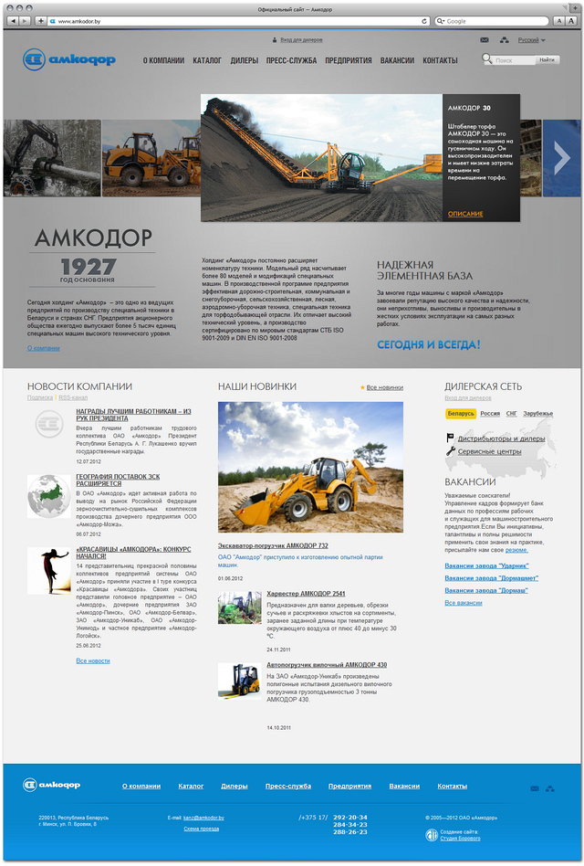 ОАО «Амкодор» – крупнейший в СНГ производитель дорожно-строительной, коммунальной, лесной и сельскохозяйственной спецтехники, а также навесного оборудования.