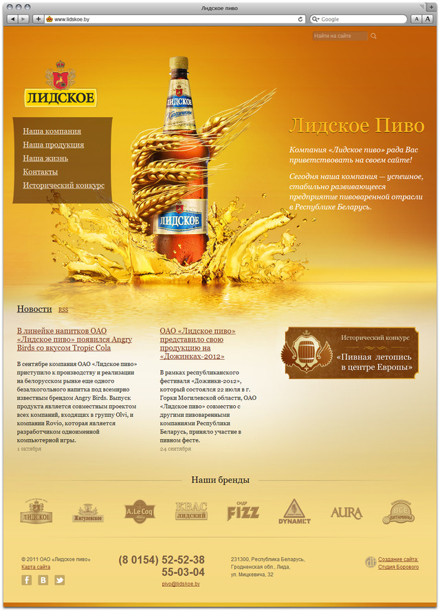 7. Корпоративный сайт ОАО «Лидское пиво»