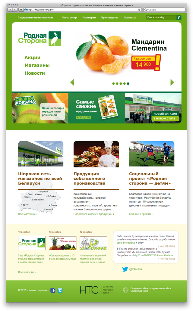 Магазины «Родная Сторона» ежедневно обслуживают около 160 тысяч человек. В рамках проводимого компанией ребрендинга «Родная сторона» и Студия Борового разработали новый корпоративный сайт сети.