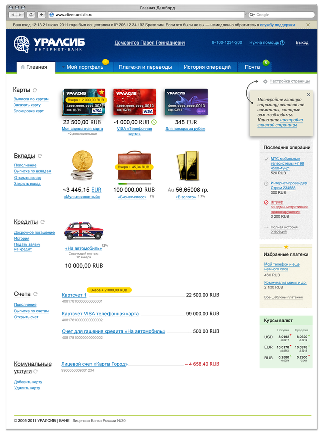 Банк УРАЛСИБ – один из крупнейших универсальных банков Российской Федерации. Для компании был разработан дизайн интерфейса интернет-банка.