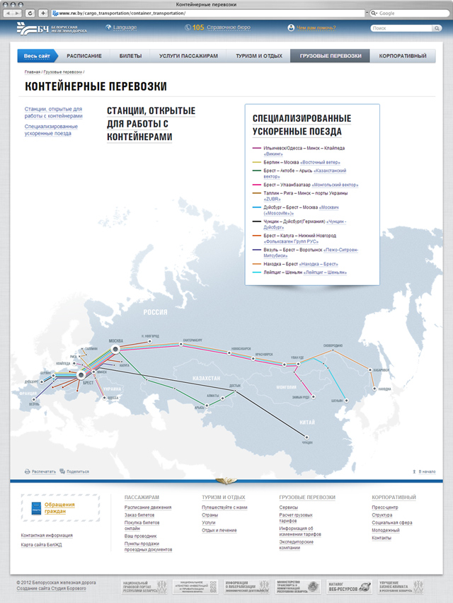 Официальный сайт Белорусской железной дороги – самый крупный корпоративный ресурс, посвященный транспорту, туризму и перевозкам в Байнете.