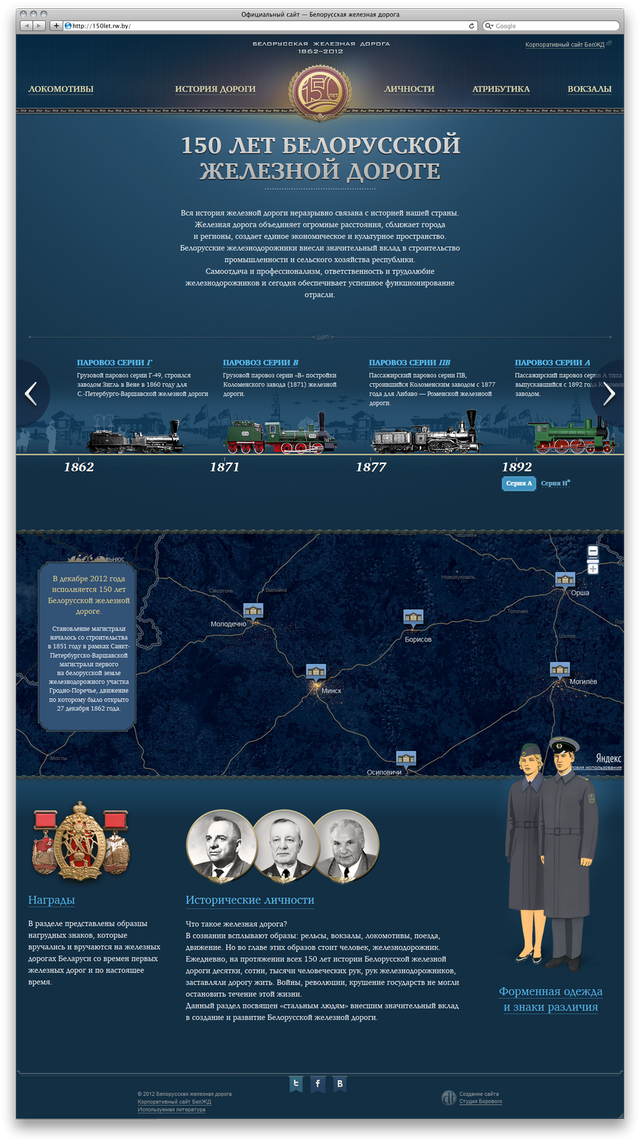 В 2012 году исполняется 150 лет с тех пор как по белорусской земле прошел первый железнодорожный состав. Специально к этому поводу в тесном сотрудничестве с Белорусской железной дорогой был разработан юбилейный промо-сайт, рассказывающей о славной истории БелЖД.