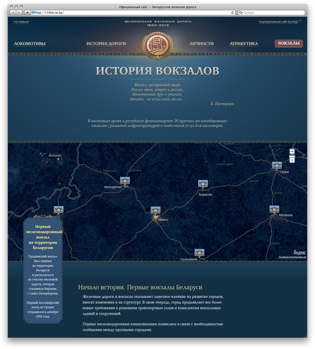2. Промо-сайт к 150-летию Белорусской железной дороги