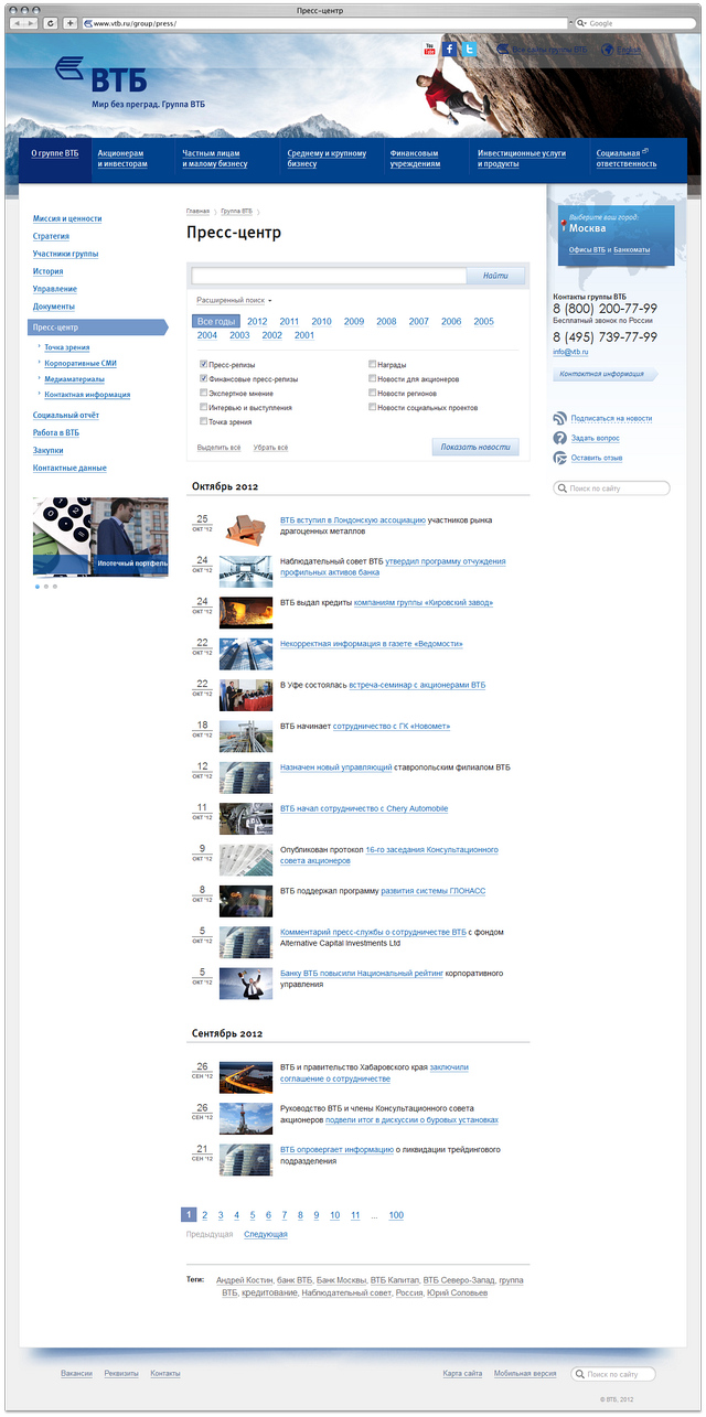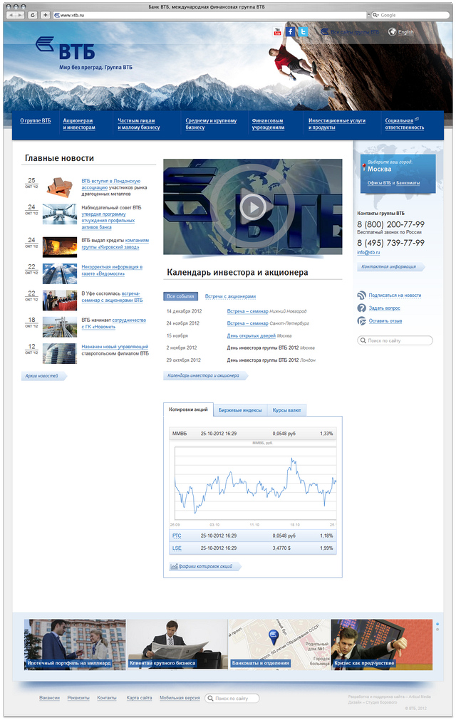 В сотрудничестве с UsabilityLab и Articul Media был разработан новый сайт российской финансовой группы ВТБ - второго по величине активов и первого по размеру уставного капитала банка Российской Федерации.