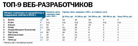 Оборот компании от разработки и поддержки сайтов в 2012 г.