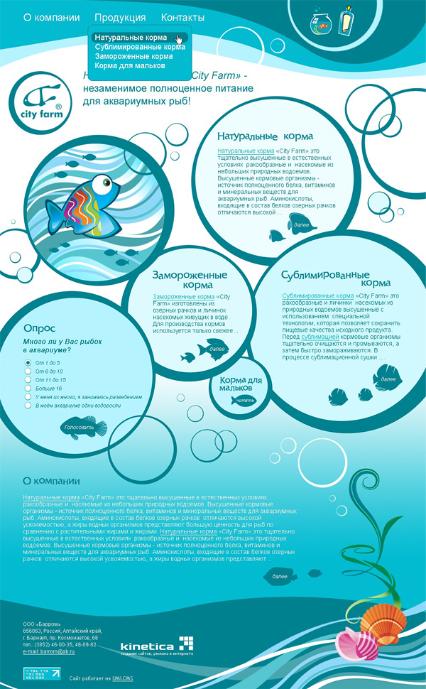 Компания «Барром» около 20 лет производит натуральные корма для рыб, осуществляя оптовые поставки продукции в десятки российских и зарубежных рыборазводных хозяйств. Сайт www.barrom.ru, созданный в веб-студии Kinetica, призван ближе познакомить постоянных партнёров со своим стабильным поставщиком, а также расширить географию продаж одного из крупнейших производителей кормов для рыб. Сайт разработан на UMI.CMS, он обладает удобной системой управления, простым функционалом и приятным дизайном.