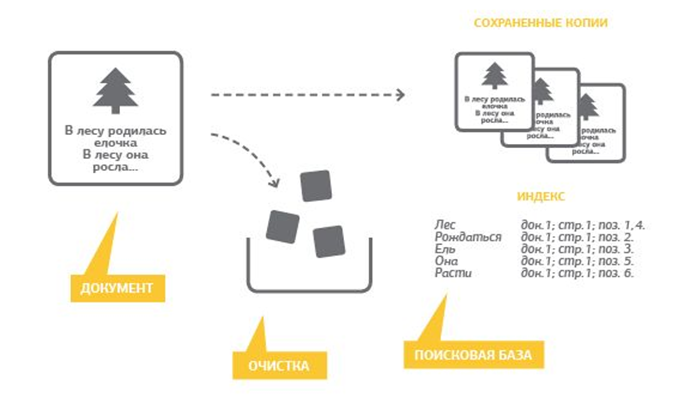 Третий пункт Энциклопедии посвящен обзору современных поисковых систем. В четвертом пункте дается информация об их устройстве, а в пятом речь идет о процессах, происходящих внутри самих поисковых систем. Чтобы упростить восприятие информации, текст дополнен наглядными схемами: