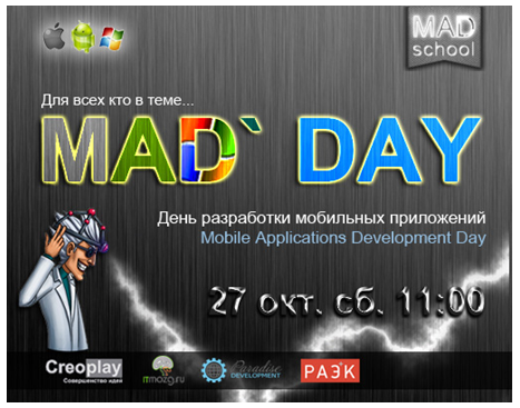 В рамках мероприятия, организованного школой MAD’School, пройдет целый ряд докладов, касающихся последних тенденций на рынке мобильных платформ, а также особенностей разработки и продвижения мобильных приложений.