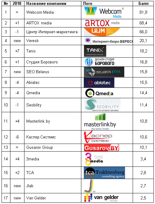 ИТОГО – лидерами Рейтинга SEO-компаний 2011 стали: