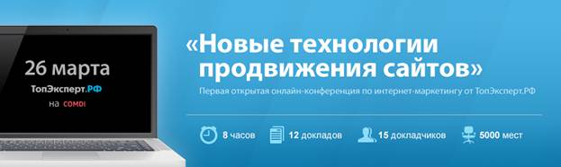 26 марта состоится уникальная конференция «Новые технологии продвижения сайтов», посвященная самым актуальным вопросам интернет-маркетинга, в частности, продвижению сайтов без спама.